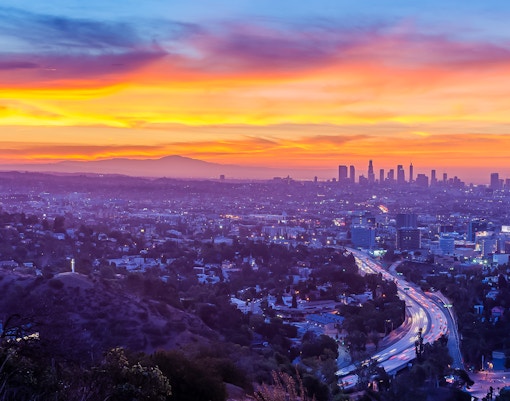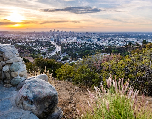 💡 Suggerimento: Prepara un picnic e recati all'Hollywood Bowl Overlook per godere di un'impareggiabile vista sul tramonto di Los Angeles. È un modo tranquillo ed economico per ammirare lo skyline della città.