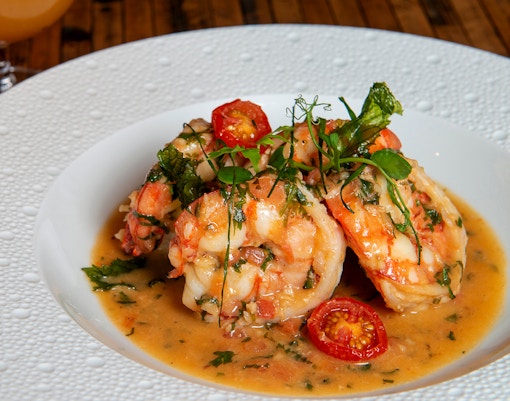 Un vivace ristorante di pesce ispirato a Forrest Gump, che serve gamberi, pesce e i classici del sud con un tocco a tema del film.